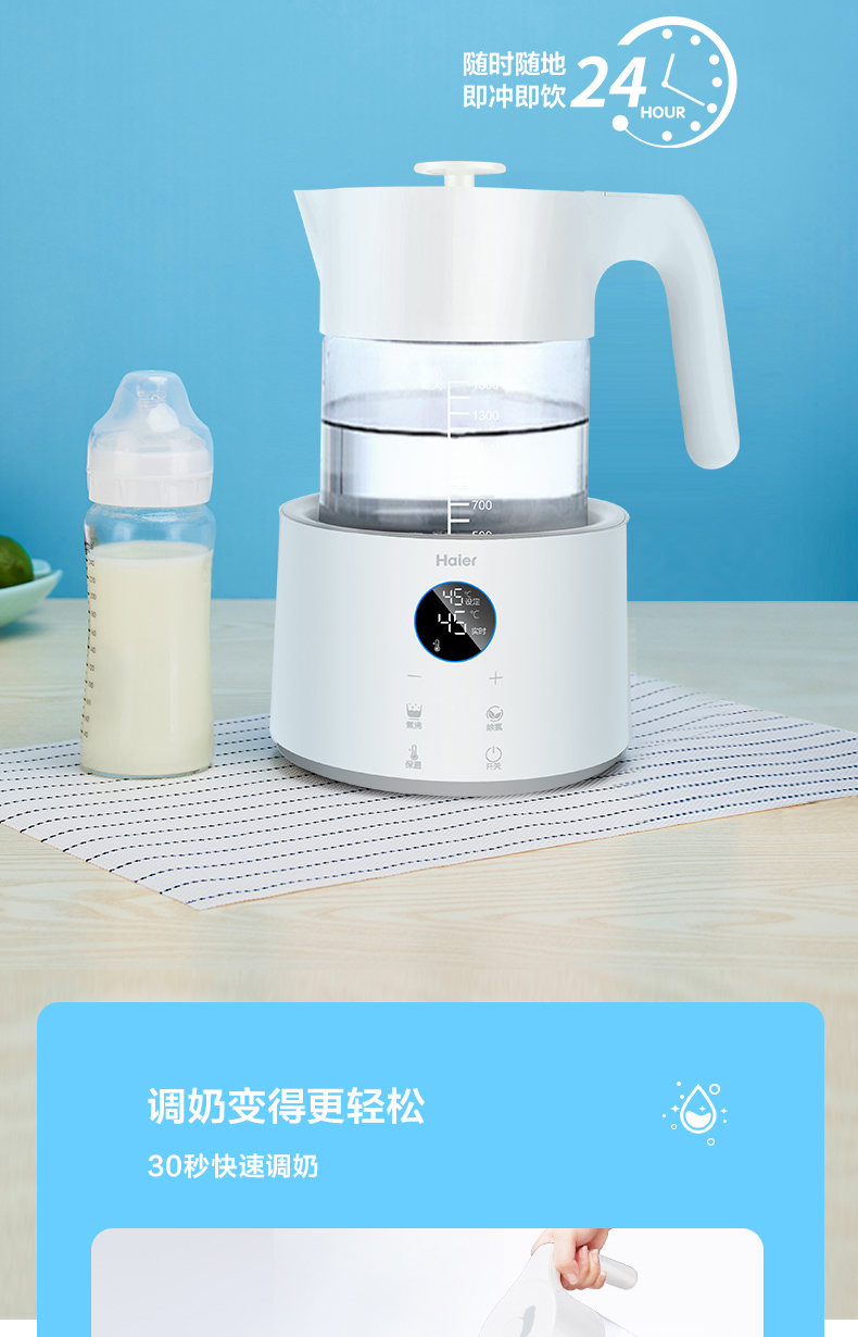 海尔(Haier) 恒温调奶器1.5L 多功能冲泡奶粉机恒温暖奶器温奶器恒温水壶 HBM-H203
