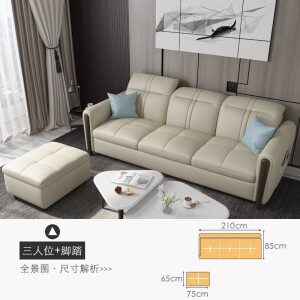 奥左 沙发 北欧现代简约头层牛皮真皮沙发组合小户型客厅家具 三人位+贵妃【2.7米左右】