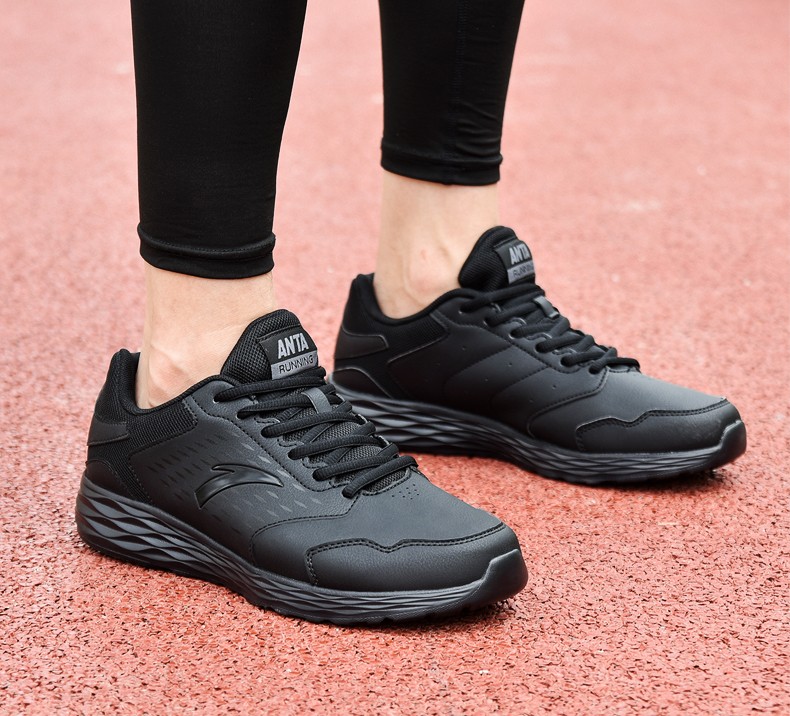 安踏男鞋皮网面运动鞋男2020夏季黑色轻...