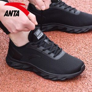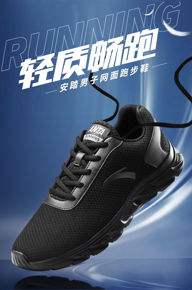 安踏男鞋皮网面运动鞋男2020夏季黑色轻便透气跑步鞋网鞋学生运动休闲鞋男士户外旅游鞋子官方店 (透气网面)黑色 男42码