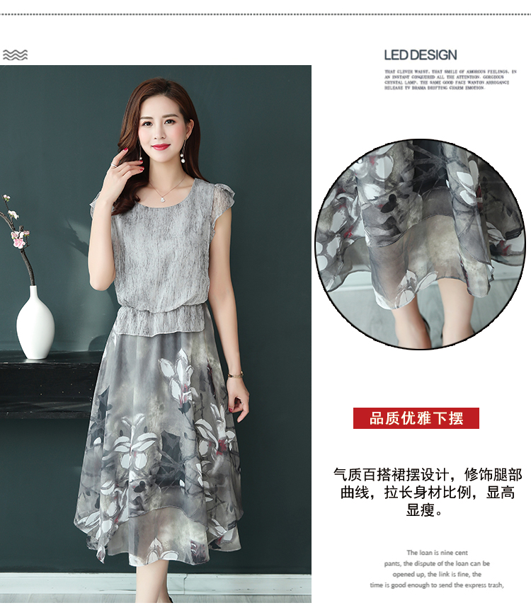 2020夏装连衣裙时尚流行女装夏天气质中长裙 灰色印花 XL(建议115-125斤)