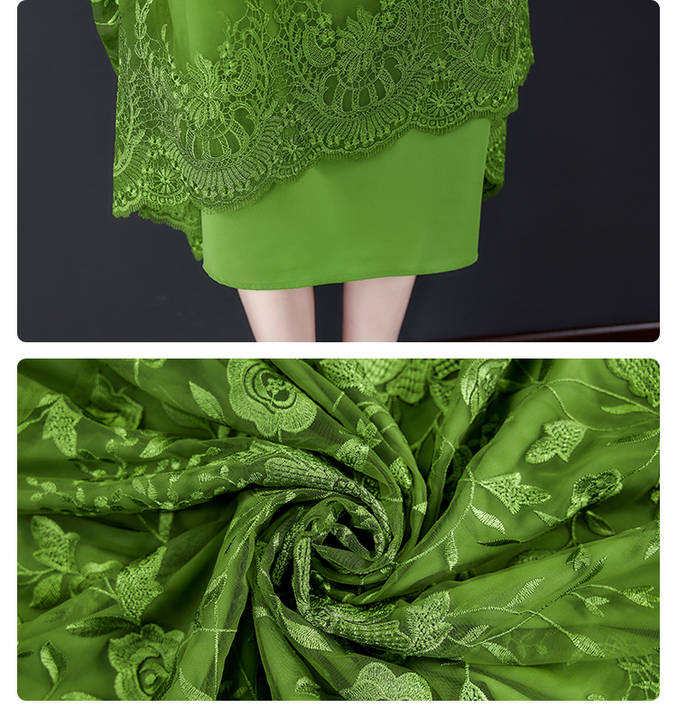 2020新款重工刺绣中长款过膝宴会礼服裙连衣裙女 绿色 3XL(建议135-145斤)