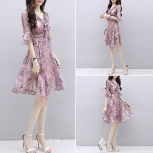 【高品质】【好质量】【好质量】2020夏季新款时尚修身气质流行小个子碎花连衣裙 YH1165 图片色 XL【建议110-120斤】