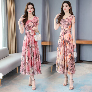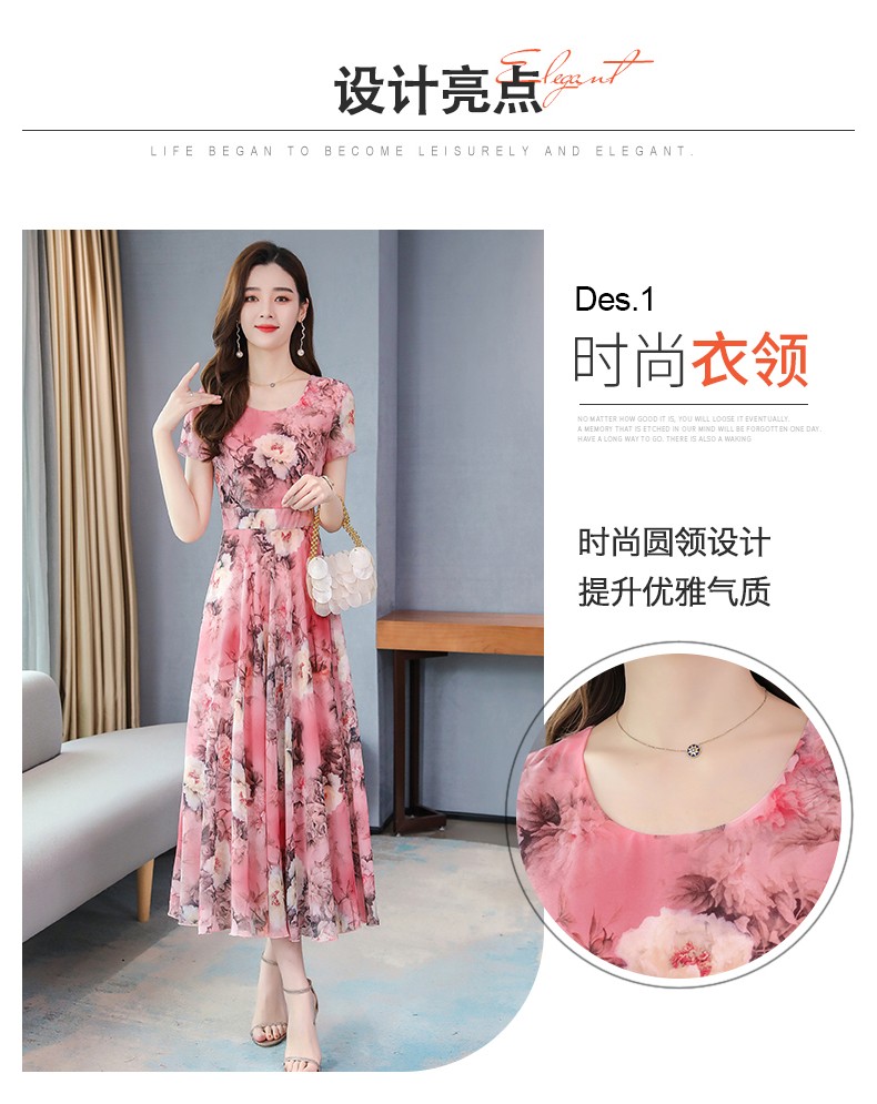 【高品质】【好质量】【显气质】2020夏季新款中年妈妈装长裙子典雅连衣裙XM2029 粉红色 2XL【建议110-120斤】
